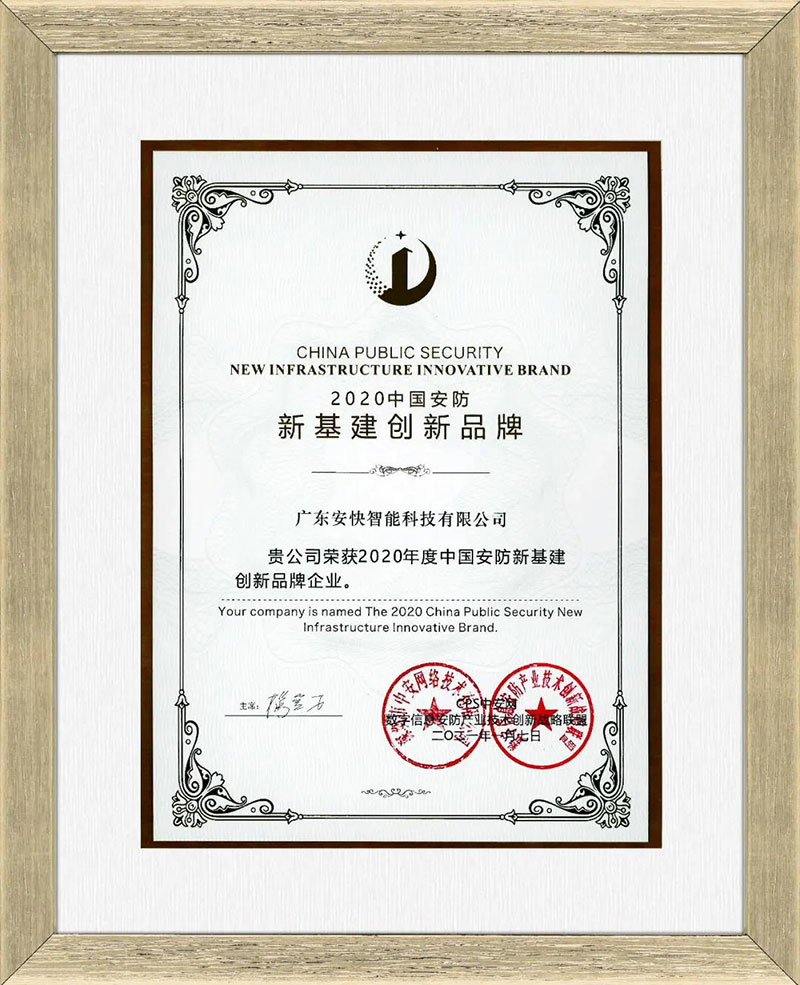 榮獲2020中國(guó)安防新基建創(chuàng)新品牌