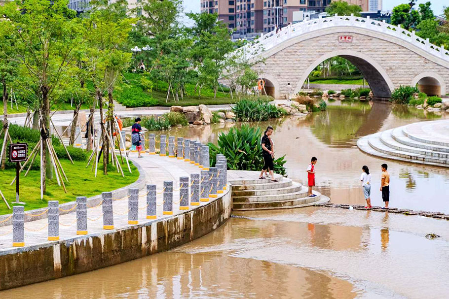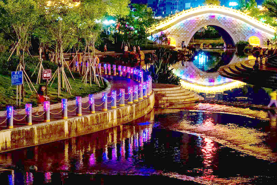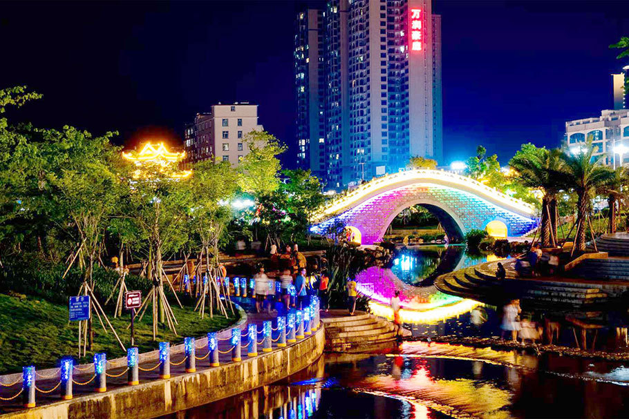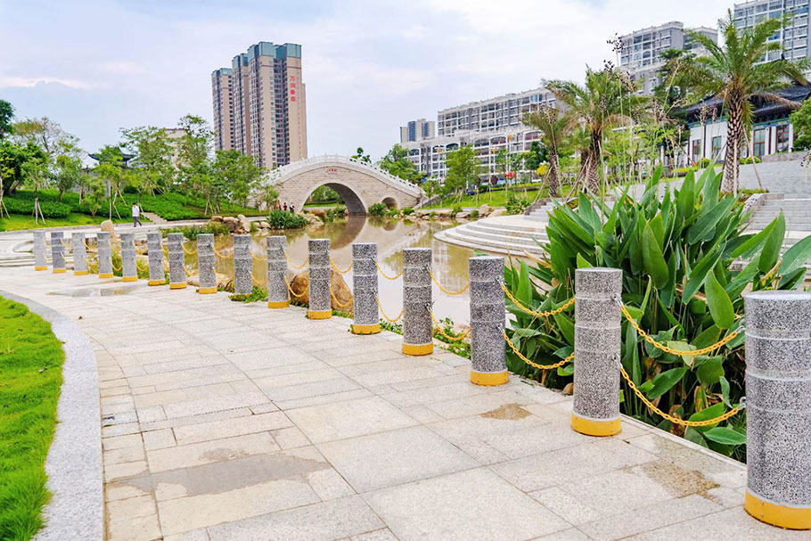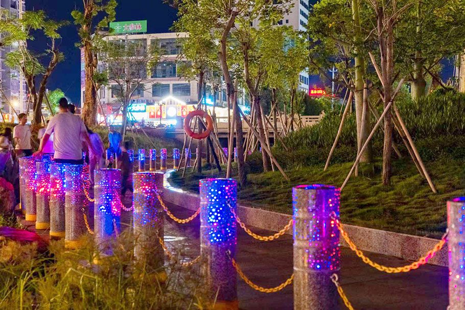 廣西北流鄉賢公園-河道發光路障石柱案例